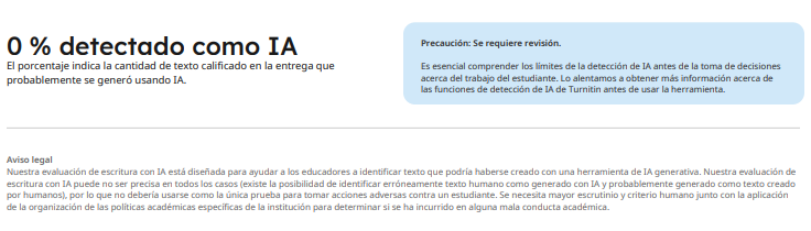 En este caso, el análisis indica un 0% de IA, lo que significa que no se detectó ningún indicio de contenido generado por inteligencia artificial en el documento.