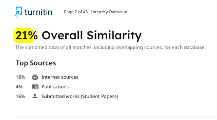 El porcentaje que aparece como resultado indica la proporción total del texto que coincide con otras fuentes.