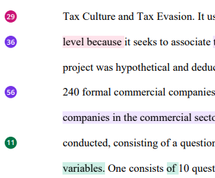 Verás diferentes colores en el texto, cada uno con un número al lado que indica la fuente correspondiente de esa similitud.